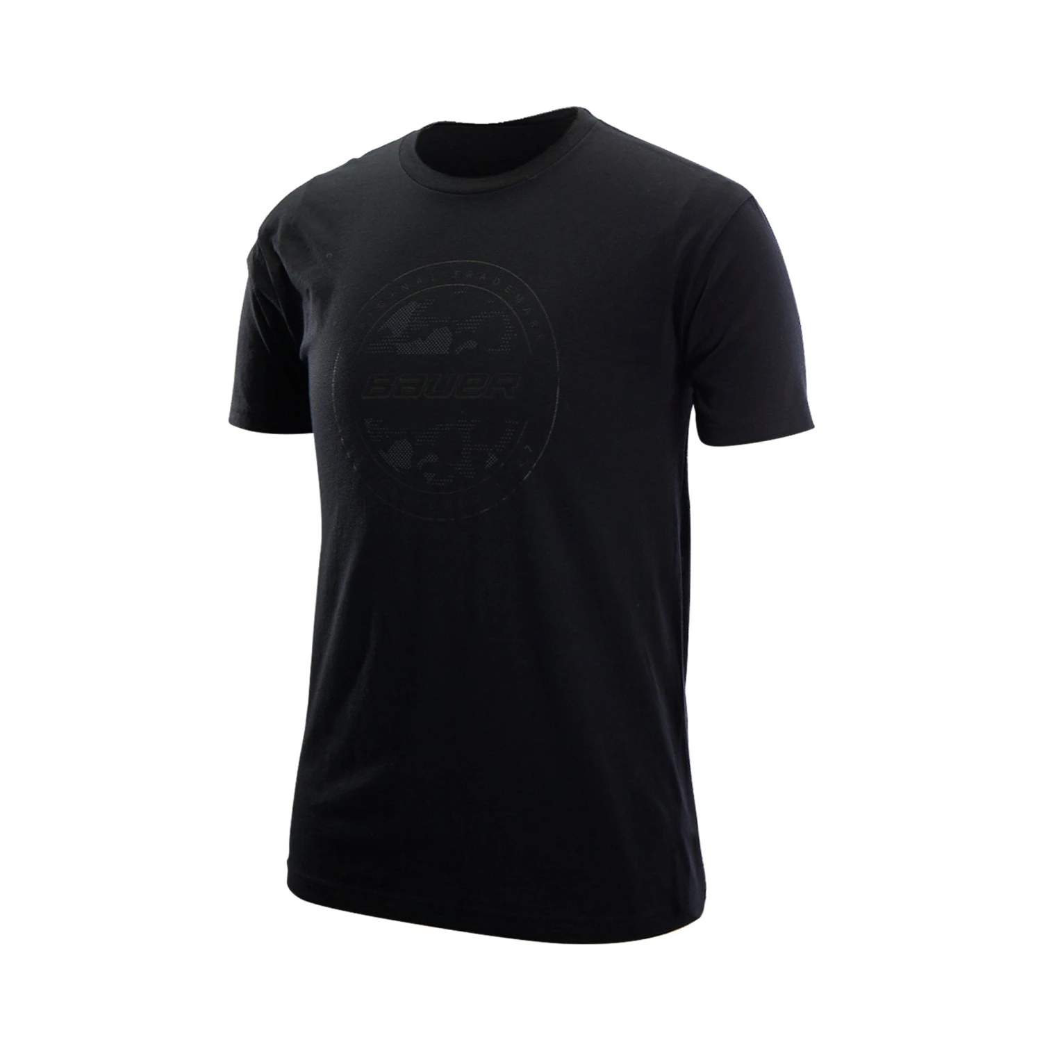 The Bauer Camo Mens Shirt is the perfect shirt to wear any place and anywhere. It features stealthy screen printed graphics on the front and a tapered hockey fit.