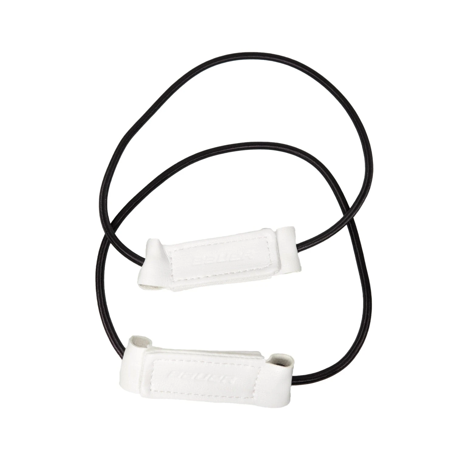 The Bauer Supreme Elastic Toe System is an upgrade or replacement toe bungee that fits all Bauer leg pads. The elastic bungee system keeps the pad closer to the skate allowing for greater mobility when dropping down into the butterfly. The ends are attached with velcro.Â