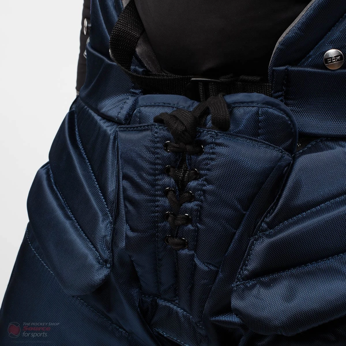 The CCM Premier Pro LE Goal Pant is available in sizes Small through Extra Large, and come in Black and Navy.