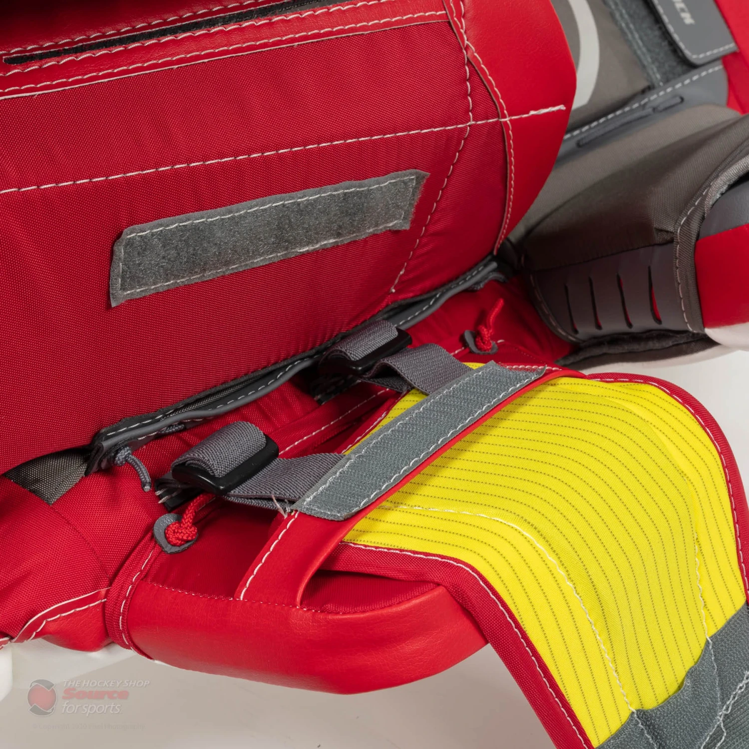 The Warrior Ritual G5 leg pads have been refined by years of constant development by Pete Smith and the team at Warrior Goalie. The intermediate sizing brings all of the benefits of the pro pad in a more condensed package. With a cleaner construction and a thinner stiffer profile overall, as well as maximized coverage with the CoverEDGE+ technology the Warrior G5 INT pads take the unique Warrior formula to another level.